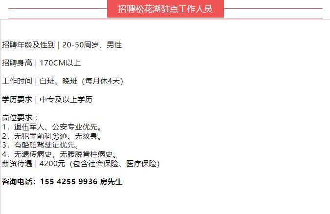招聘松花湖駐點(diǎn)工作人員