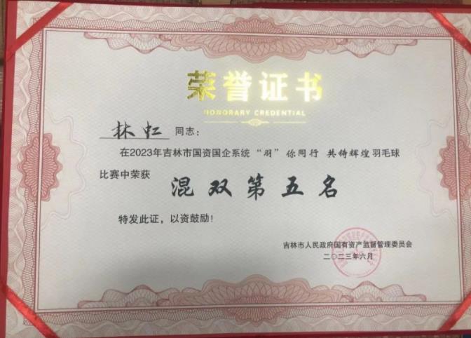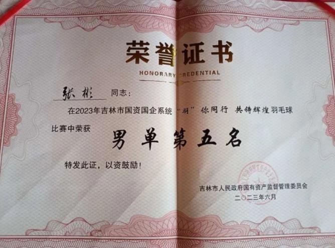 這次羽毛球比賽,23支代表隊,170余名參賽運動員。張彬、林虹代表集團參賽,積極弘揚拼搏向上、勇毅前行的精神, 披荊斬棘,勇往直前,奪得市國資國企系統羽毛球比賽男單、混雙第五名較好成績。