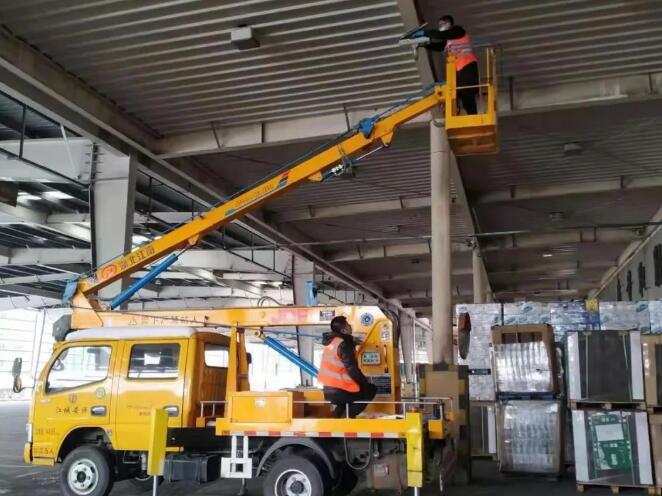 本次維護監控的點位距離地面垂直高度達到10米以上,技防分公司派出高空作業車輛,在保障安全生產的前提下進入廠區進行監控維修。施工作業由技防分公司專業維護人員負責,經過三天的搶修,共計維護監控點位15個,廠區內所有監控畫面全部恢復。